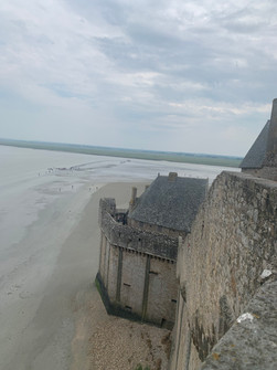 Man wandert zweieinhalb Kilometer durch die Bucht (bzw. inzwischen auf einem sehr gut ausgebauten „Steg“), bis man an der Klosterburg angekommen ist. Es ist übrigens die Bucht mit den stärksten Gezeiten Europas. Das heißt nur mehrmals im Jahr wird es zur Insel. Und pssst - wir sind auch wieder in der Normandie gelandet.
